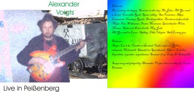 live inb PeißenbergDisk one1. Happy birthday (trad.) 2. don't worry, be happy (Bobby Mc Ferrin - Cover) 3. summer in the city (loving spoonfull - Cover) 4. the Joker (Steve Miller Band - Cover) 5. All you need is love (take 1) (Beatles - Cover) 6. Crocodile Rock (Elton John - Cover) 7. Space oddity (David - Bowie - Cover) 8. San Francisco (Scott Mackenzie - Cover) 9. Alice (Smokie - Cover) 10. Lemon trree (Fools Garden - Cover) 11. country roads (John Denver - Cover) 12. Dchingis Khan (Dschingis Khan - Cover) 13. Bruttosozialprodukt (Geier Sturzflug - Cover) 14. Major Tom (Peter Schilling - Cover) 15. Wahnsinn (Wolfgang Petry- Cover) 16. Fiesta Mexicana (Heino - Cover) 17. Griechischer Wein (Udo Jürgens - Cover) 18. Marmor, Stein und Eisen bricht (Drafi Deutscher - Cover) 19. Hey Jude (Beatles - Cover) 20. All you need is love (take 2) (Beatles - Cover) 21. Sailing (Rod Steward, Gavin Sutherland - Cover) 22. I like chopin (Gazebo - Cover) 23. Still loving you (Scorpions - Cover) Disk two1. Angie (Rolling Stones - Cover) 2. let it be (Beatles - Cover) 3. candle in the wind (Elton John - Cover) 4. father and son (Cat Stevens - Cover) 5. Yellow submarine (Beatles - Cover) 6. Alkohol (Herbert Grönnemeyer - Cover) 7. Holzmichl (Cover) 8. Skandal im Sperrbezirk (Spider Murphy Gang - Cover) 9. Über 7 Brücken musst du gehen (Karat - Cover) 10. irgendwie , irgendwo, irgendwann (Nena- Cover) 11. Summer of 69 (Brian Adams- Cover) 12. Lady D'arbanville (Cat Stevens - Cover) |